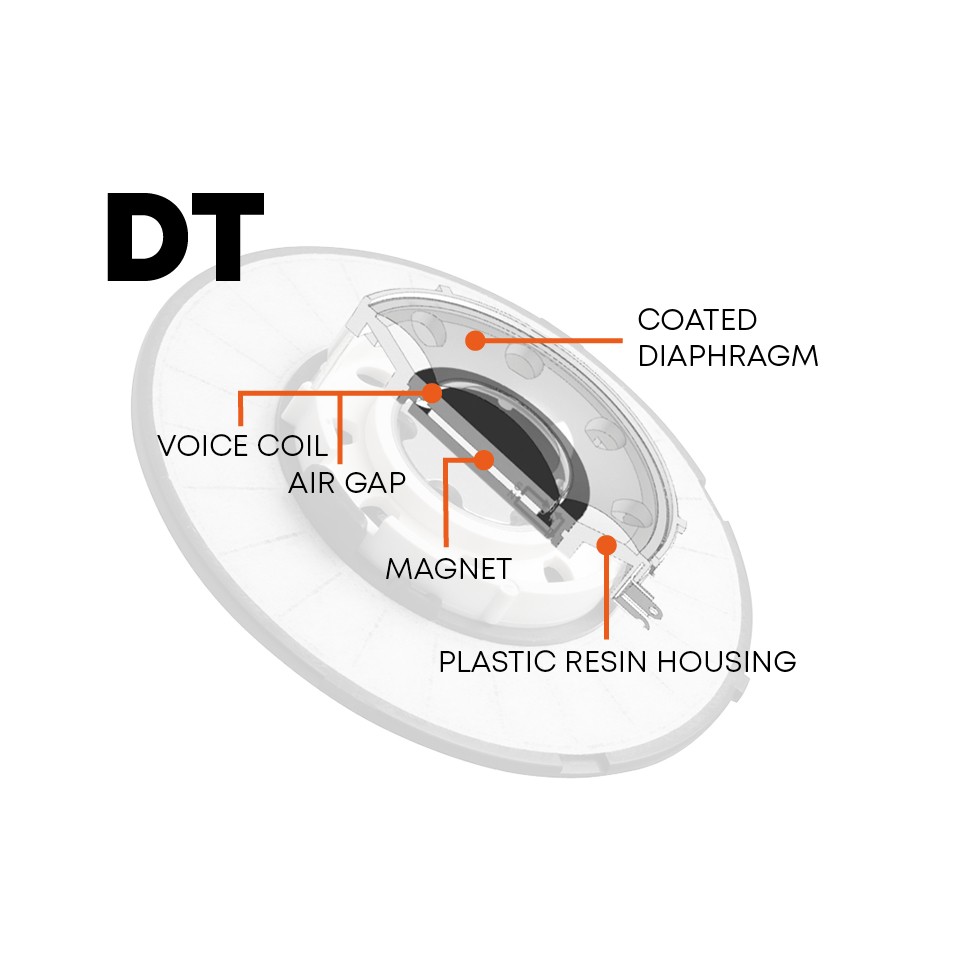The multilayer sandwich membrane material combines high rigidity and low weight, delivering advantages such as ultra-deep bass and crystal-clear highs.